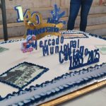 Acompañado de marimba, piñatas y música, el evento también presentó una atracción diferente: un pastel gigante que fue trasladado con gran alegría por los oficiales del mercado a lo largo de la carretera principal hacia la entrada de un edificio histórico.