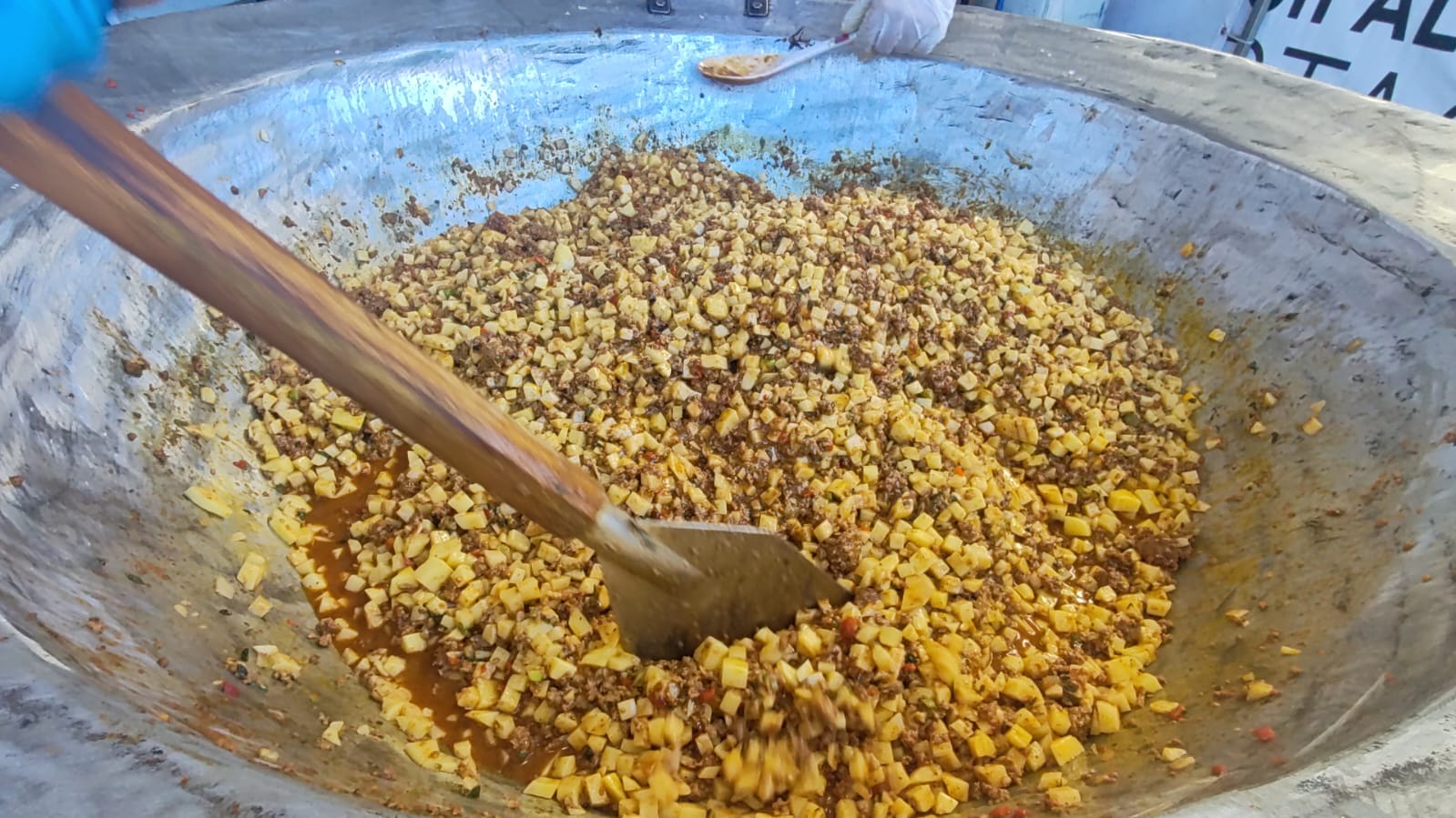 En la explanada sur del mercado, chefs y vecinos se unieron desde temprano para preparar esta receta gigante, que no solo se convirtió en un atractivo visual, sino que simboliza la fusión de la comunidad. Este platillo monumental incluye:
