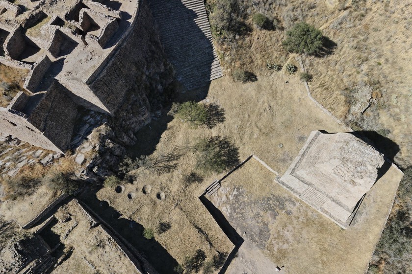 También edificios ceremoniales como Pirámide votiva A unos 12 metros de altura, el salón de las columnas o un observatorio que serviría a la vigilancia y que también tendría funciones astronómicas. La función de los diferentes elementos es más o menos clara, pero hay algo que los arqueólogos han limitado durante mucho tiempo: enormes agujeros.