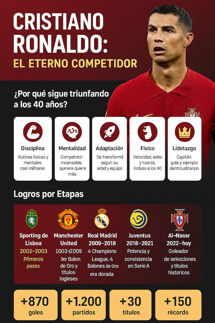 Además de sus logros deportivos, su profesionalismo es un ejemplo de generaciones. Cristiano Ronaldo no es solo una leyenda del fútbol sino un símbolo de perseverancia, liderazgo y entusiasmo. Aunque muchos contemporáneos cuelgan zapatos de tobillo, siguen siendo un héroe en cada torneo que disputa.