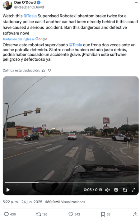 Miedo a la policía. En TechCrunch Repita el video y pone la posibilidad de que este tipo de comportamiento se deba al hecho de que los Tesla Robot Taxis han hecho de sus propios conductores.