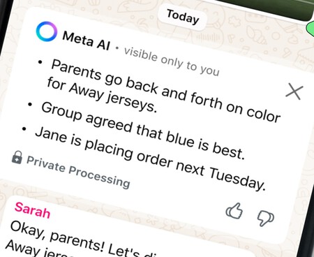 Este sistema funciona con una tecnología de ejecución confidencial que se basa en entornos seguros (TEA) y permite a la IA generar respuestas sin mantenerlos o compartirlos con nadie. Además, el resumen solo es visible para aquellos que solicitan: el resto del chat que las personas no sabrán que esta función se ha utilizado.