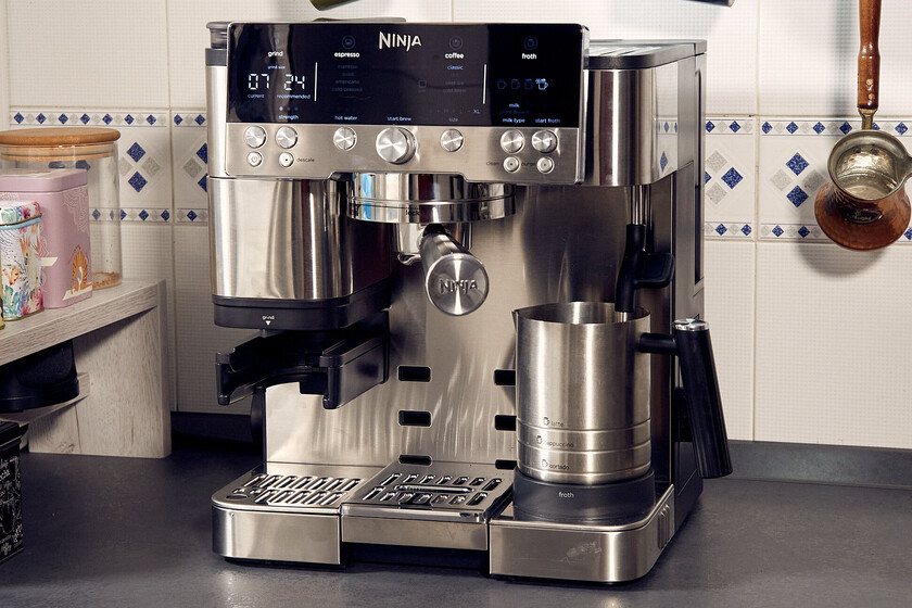 Lo que hacen estas ‘supermanuales’ es contar con un sistema llamado ‘Barista asistente’ que, aparte de guiarnos, va realizando correcciones automáticamente. El molinillo de la Ninja Luxe Café tiene 25 ajustes de molienda, siendo los más finos los ideales para espresso. En el primer espresso, me recomendó un nivel 10 y yo ya sabía que iba a ser demasiado grueso. Así fue: café ácido y sin gracia por una mala extracción.