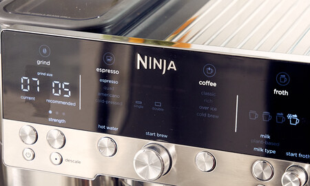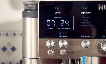 Lo que hacen estas ‘supermanuales’ es contar con un sistema llamado ‘Barista asistente’ que, aparte de guiarnos, va realizando correcciones automáticamente. El molinillo de la Ninja Luxe Café tiene 25 ajustes de molienda, siendo los más finos los ideales para espresso. En el primer espresso, me recomendó un nivel 10 y yo ya sabía que iba a ser demasiado grueso. Así fue: café ácido y sin gracia por una mala extracción.