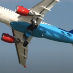 Como se puede ver en el espectacular video pUblizado por los videos del canal PerinakxAmbos comienzan En entrenamiento cerrado, paralelo y elegante. En el medio de la ruta, uno de los aviones continúa aumentando suavemente, mientras que el airbus comienza un giro hacia la derecha que deja el fuselaje azul que se corta contra el cielo. La imagen es impresionante desde el suelo: los motores rojos, el fuselaje azul con alas y ojos estilizados que observan como si el avión fuera consciente.