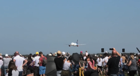Más tarde, en otro corte de video, te vemos de nuevo en acción. Este tiempo vuela por separado, pero siempre muy cerca del suelo. El Airbus protagoniza la maniobra más valiente: se acerca a la ruta como si estuviera aterrizando, inicialmente soporta las ruedas traseras y, casi imperceptiblemente, el tren delantero. Corre unos pocos metros, levanta la nariz con una decisión, tiende al avión ligeramente hacia la derecha y disminuye nuevamente. Todo en segundos. Todo con una suavidad que no parece desprevenida al peso del nivel de gravedad.