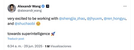 Robo de talento. Zuck ha confirmado en una explicación interna en estos días Filtrado por CNBC Estos signos. Había 11 ingenieros, 7 de los cuales vienen de OpenAai. En esta declaración, también se confirmó la formación de un nuevo departamento de «superinteligencia» bajo la dirección de Alexandr Wang. Y a su vez saludó a cuatro de estos nuevos compañeros, sobre de quienes hablamos.