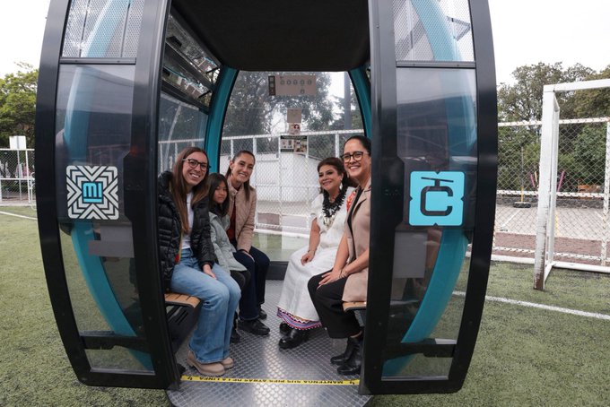 El presidente México, Claudia Sheinbaum, dio una bandera de salida sobre las obras de la nueva línea de cable, que se trasladará de la ciudad universitaria en la zona sur, en el área superior del alcalde de Tlalpan.