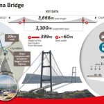 La longitud es de aproximadamente 3.7 kilómetros con torres gemelas de 399 metros en ambos bancos, una altura de 72 metros sobre el nivel del mar, de modo que pasan los barcos grandes y la capacidad y la capacidad de moverse Una gran cantidad de vehículos. Los tres carriles en dirección a 6,000 vehículos por hora ofrecen una capacidad, y sus dos ferrocarriles permitirían una cadencia de 200 movimientos por día.