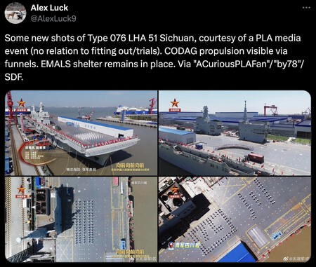 Y no tan secreto. El funcionario es que China tiene otro nuevo miembro de la flota, que se conoce como tipo 076. Es un barco anfibio que sería único en el mundo al tener una gran cubierta que esconde una catapulta electromagnética en una de sus partes.