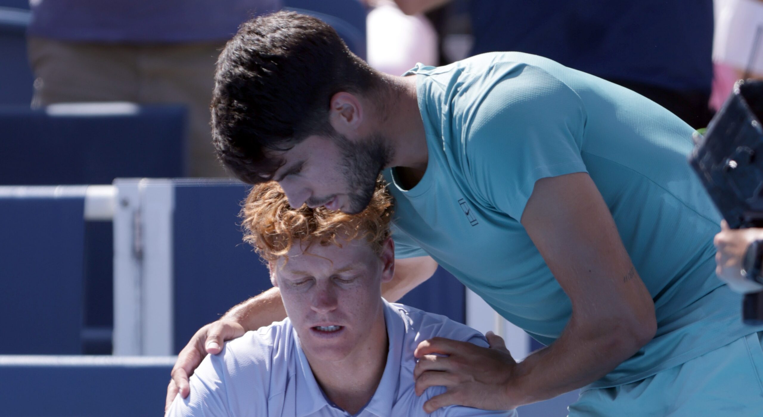 “Lo siento Jannik”, escribió Alcaraz en la cámara de televisión una vez terminada la final.