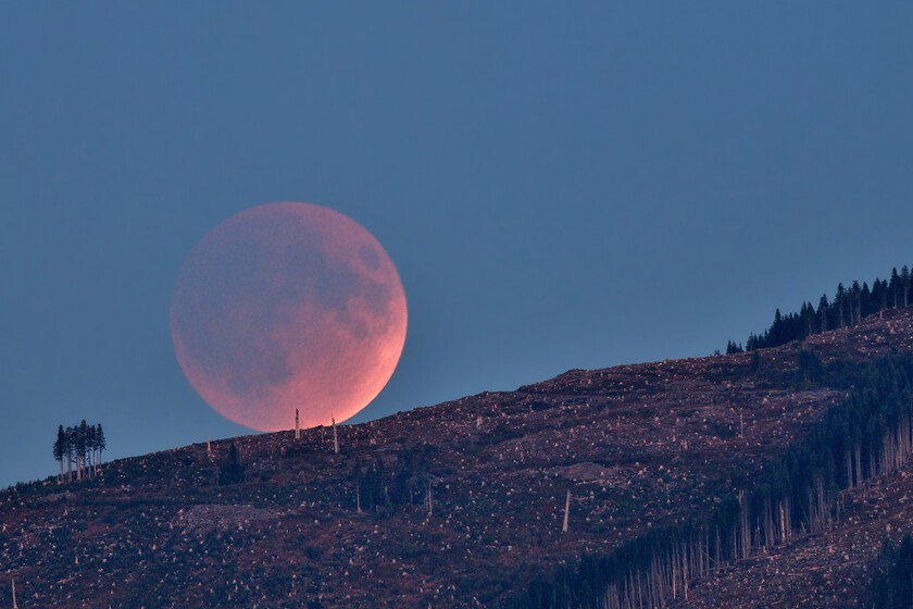 Un eclipse lunar total. Hay al menos dos eclipses lunares cada año, pero no siempre son totalmente. Este domingo 7 de septiembre, uno de los más largos se verá de la mayoría de Asia con un total de 82 minutos en la década. Ya se puede ver De la mayoría de EspañaCon la luna muy baja en el horizonte. Pero no será visible desde América.