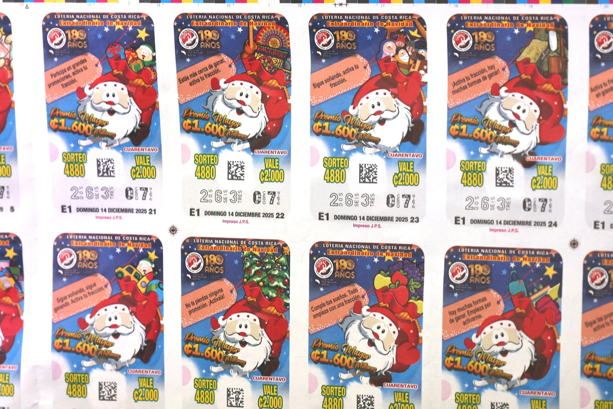 - Premios adicionales: 15 premios de ₡ 6 millones, 25 premios de ₡ 3 millones, 30 premios de ₡ 2 millones y 77 premios de ₡ 1 millón.
