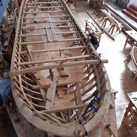 Hecho a mano al extremo. Este “capricho” sigue un riguroso proceso que consiste en reproducir métodos constructivos de hace 500 años, que está documentado paso a paso y que no resulta nada sencillo. El San Juan original Pesaba 200 toneladas, medía 20 metros de largo, 7,5 metros de ancho y seis metros de profundidad. Y lo reconstruyen no sólo con estas dimensiones, sino también con los materiales originales.