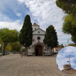 En este caso se aprecia que la escena está más oscura de lo que realmente estaba aquel día. Pese a haber nubes, también estaba el sol y la iluminación de esta ermita era bastante mejor que la que se muestra. Aparte, la fotografía tiene un cierto tono verdoso, visible sobre todo en las zonas de sombra y los árboles.