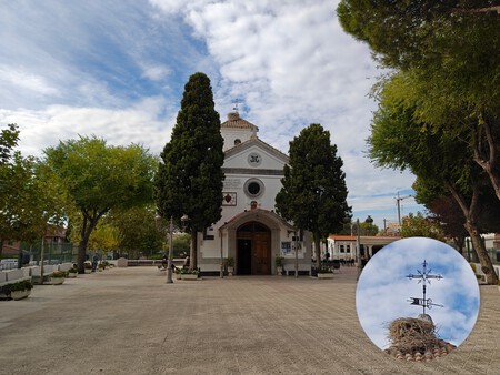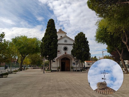 En este caso se aprecia que la escena está más oscura de lo que realmente estaba aquel día. Pese a haber nubes, también estaba el sol y la iluminación de esta ermita era bastante mejor que la que se muestra. Aparte, la fotografía tiene un cierto tono verdoso, visible sobre todo en las zonas de sombra y los árboles.