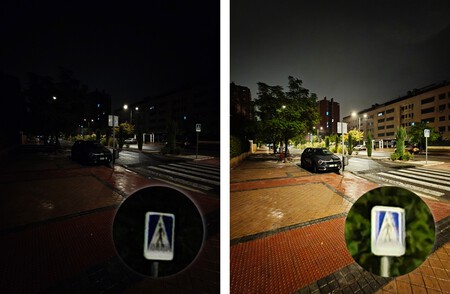Como sucede con la principal, el modo noche del gran angular aporta un extra de luminosidad que nos sirve para ver infinitamente mejor la escena que se captura. Y pese a seguir siendo artificial, percibo que la escena no se aleja tantísimo de la realidad como con la principal. Eso sí, los detalles y las texturas se pierden por completo al ampliar.