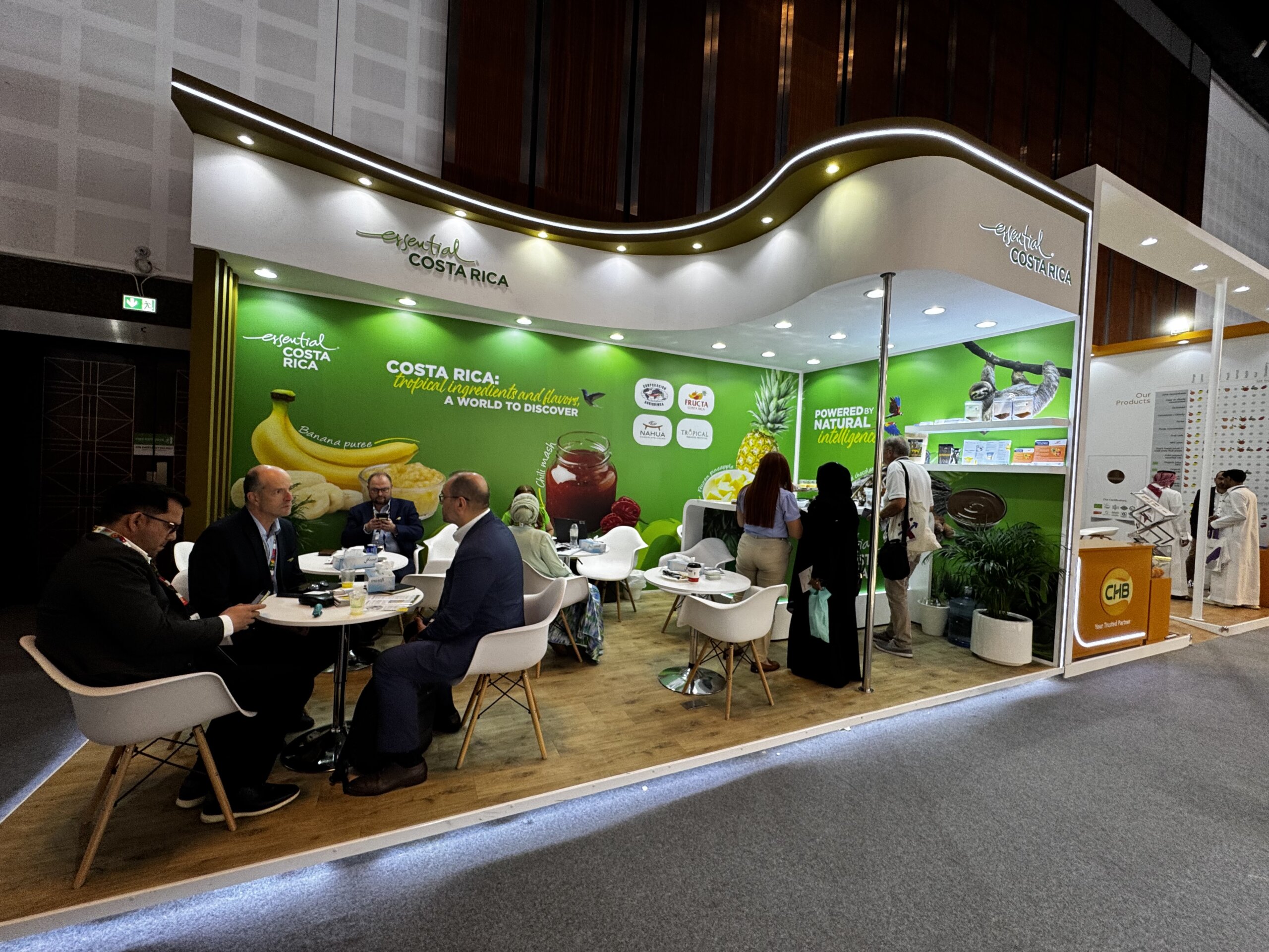 el pabellón esencial Costa Rica unir empresas Paraíso Tropical, Nahua, Agriquimsa y Fructa Costa Ricaque destacan por su sostenibilidad y capacidad de innovación.