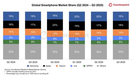 Un mercado de tradiciones. Los datos de Contrapunto en el tercer trimestre de 2025 Dejan una cosa clara: la falta de innovación tecnológica no afecta ni a Samsung ni a Apple. Las dos compañías líderes mantienen su posición, seguidas de Xiaomi, lo que ya es prácticamente una tradición en mercados como el europeo.