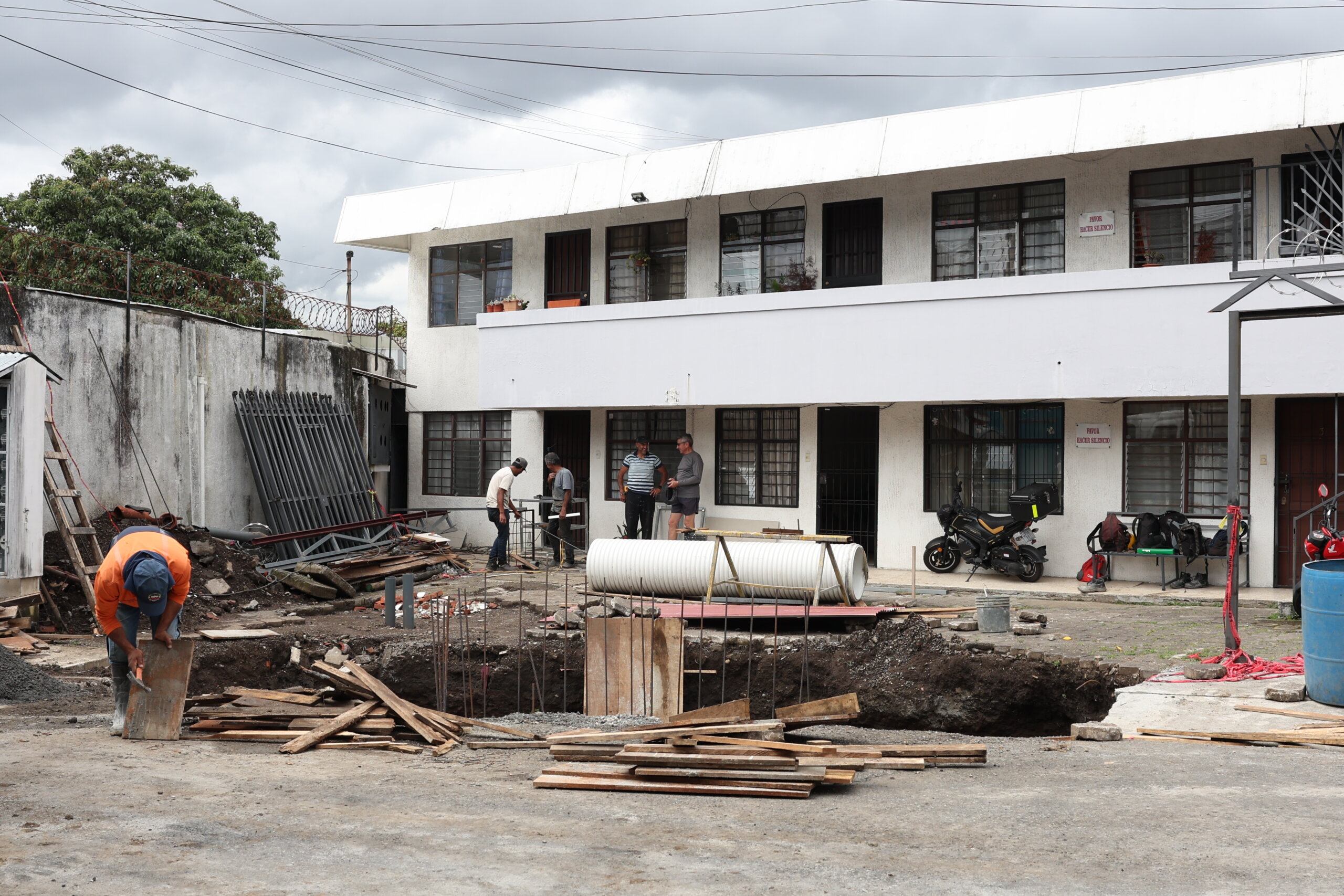 Uno de los inquilinos, Sergio Sibaja, lleva 22 días lidiando con el ruido, la gran cantidad de basura y maquinaria que llegan frente a su casa desde que apareció el agujero en la zona.